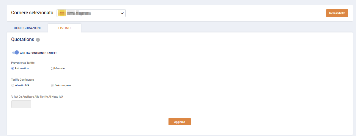 Before enabling the price list feature, verify that it is included in your plan and that the courier is active for generation on Qapla’. If it is not active, you can configure it independently or contact our customer care (support@qapla.it) for configurations subject to restrictions.